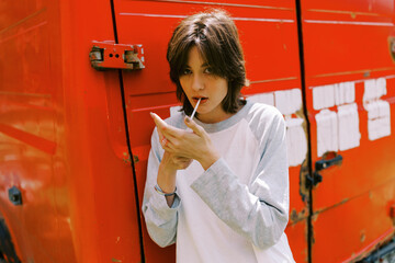 summer female portrait  with cigarette outdoors