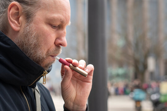 Closeup detail view of man smoke marijuana ganja joint cigarette