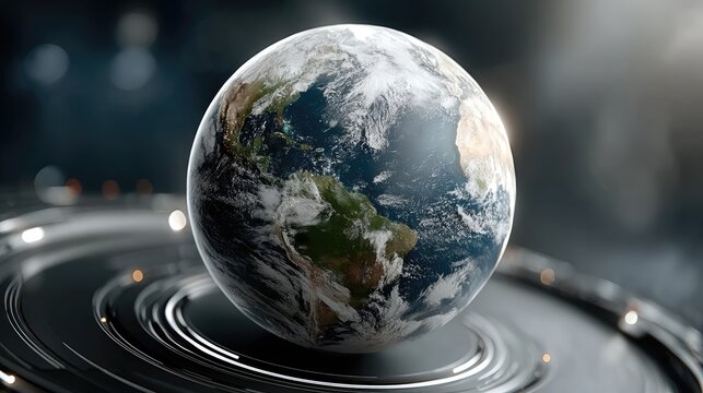 Futuristic digital planet Earth surrounded by luminous circles on a dark background, symbolizing cyber technology and innovation