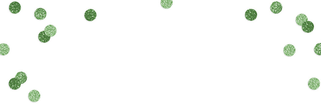 Saint Patrics day or birthday festive composition. Green glittering round confetti isolated on background. Celebration, party concept. Sparkling metallic texture. Flat lay, top view. Empty copyspace