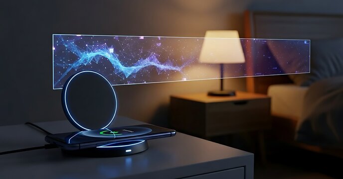Sleek, dark ring with glowing light.  Circular, metallic object,  blue accent.  Modern design, minimalist