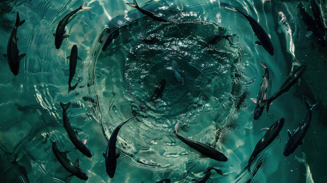 Gentle fish swimming in circular pattern create mesmerizing ripples in clear water, showcasing beauty of aquatic life