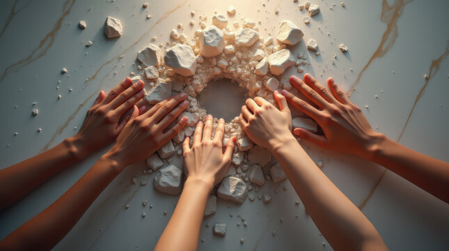 Close-up hand zooming structural design with magnifying glass