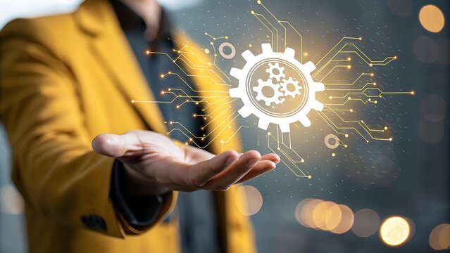 Futuristic glowing circuit board with central processing unit and data streams emanating from the core component