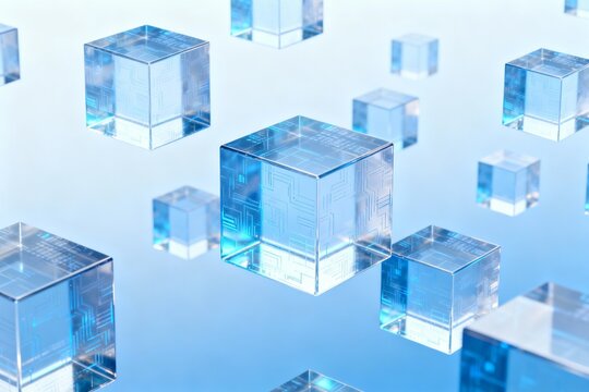 Floating bitcoin orbs with circuit pattern over digital node network in teal