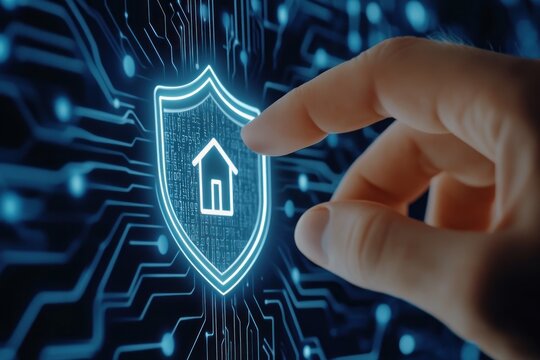 A glowing red and blue shield icon symbolizing digital security on a dark, futuristic circuit board background.