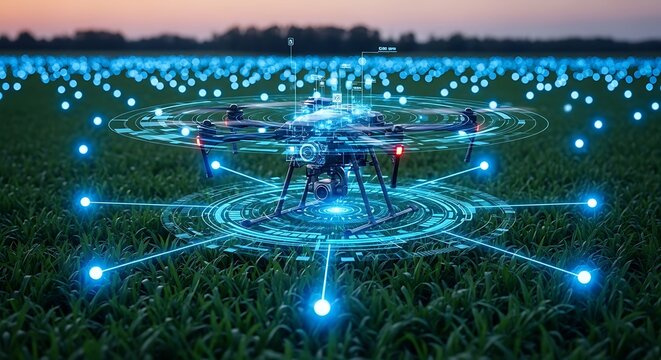 A futuristic, digital interface with a glowing, circular interface and various data charts and graphs.