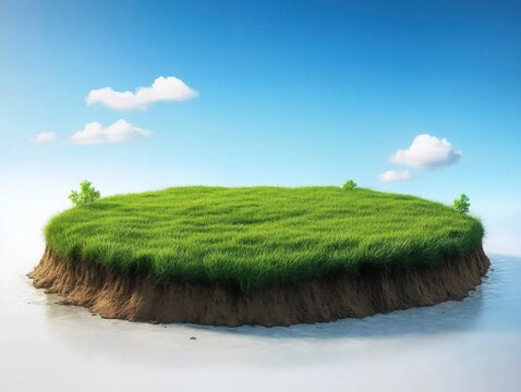 3d rendering of a circular grass podium, soil cross section, product display model