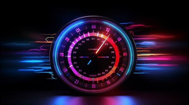 Futuristic neon speedometer hud display showing 120mph with magenta needle