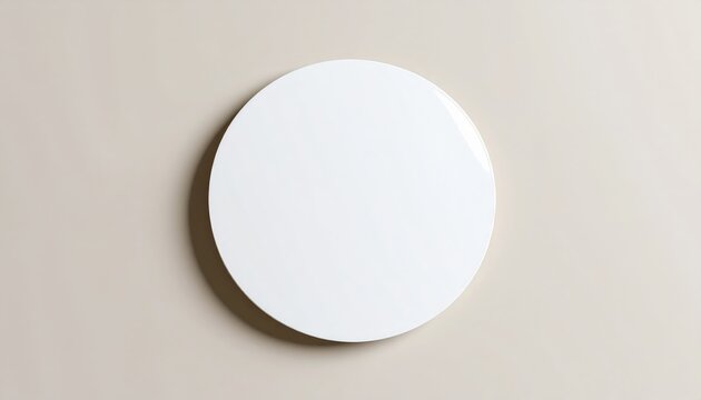 Minimalist White Circle: A clean, blank white circular object with subtle shadows on a neutral light beige background, ideal for mockups and design.