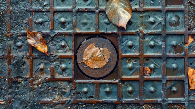 metal round sewer hatch on the sidewalk