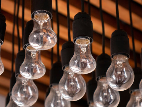 Close-up of illuminated light bulbs.