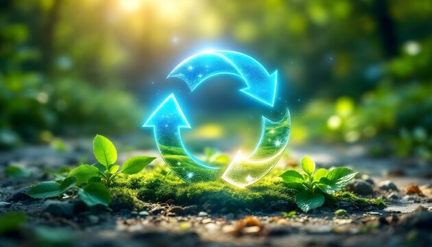 World environment day. glass sphere reflecting lush green foliage and sunlight, circular economy renewable energy . sustainable development resting  natural environment.