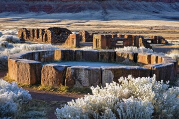 Serene Winter Landscape Snowy Plateau with Circular Structure