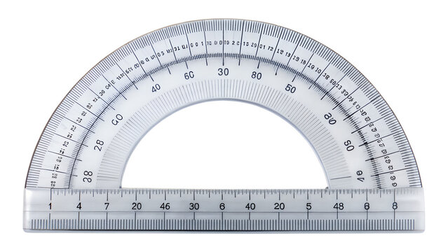 Transparent plastic ruler and protractor for measuring