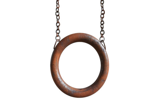 Rusty Iron Plate, Round Shape, Hanging with Chains, on White Background, Abstract Image for Advertising Campaigns, Creatives, Advertisements.