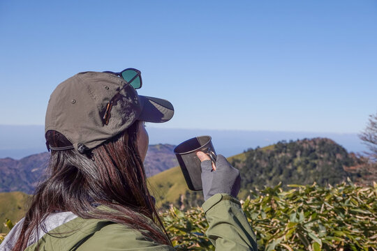山で休憩