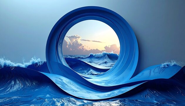 A stylized ocean scene with a blue circular structure