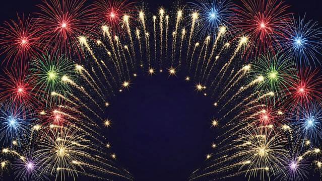 Dynamic firework bursts captured in high resolution with space for text, ideal for event invitations and holiday promotions