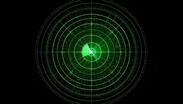 A green circular radar display showing blips and concentric rings against a black background