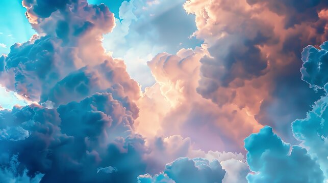 A beautiful sky with pink and blue clouds. The clouds are soft and fluffy, and the sky is a deep blue.
