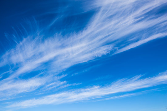 Beautiful cirrus cloud formations in a deep blue sky