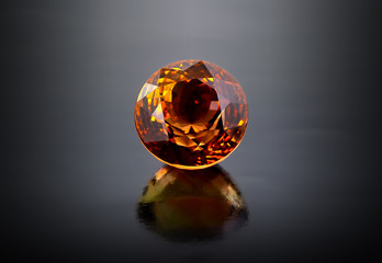 Single round citrine gemstone on dark background.