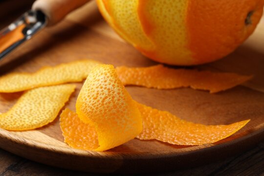 dry citrus fruits, cinnamon sticks and anise on wooden background