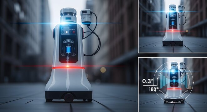 Smart robot scanning a warehouse, using AI to manage inventory and logistics