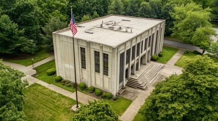 Courthouse building exterior with classical architecture, symbolizing justice and order in society. Timeless design reflecting the importance of legal systems and civic responsibility.
