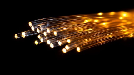 fiber optic system. Illuminated Fiber Optics Bundle Closeup Shot