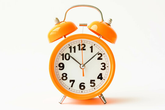 Bright yellow retro alarm clock with twin bells on transparent background. Classic style showing 8:00. Great for time-related designs and wake-up concepts in PNG format.