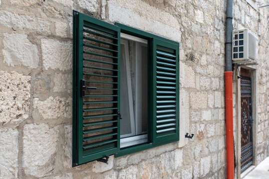 Green pvc louvered window shutters