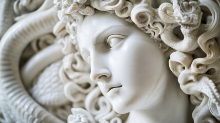A carved marble statue of the beautiful Medusa, the Gorgon of the greek mythology