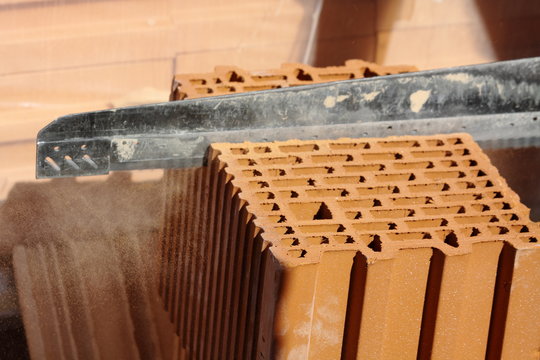 Brick for construction made of baked clay and have a rectangle, brick lump