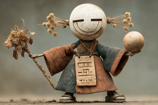Mesopotamian Mythology・Paradox Cycle of Fated Terracotta Puppet | Gold-Threaded Puppet Holding Clay Orb, Burning Cuneiform Tablet, Ash Becoming New Symbols