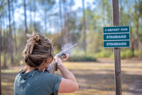 Smoking hunting gun or shotgun, clay pigeon shooting, Aviemore, Scotland, UK