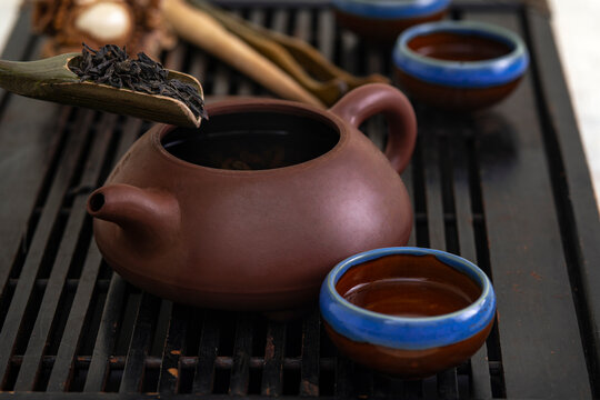 Traditional chinese tea ceremony with teapot and puerh tea