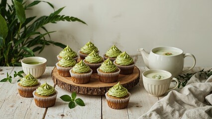 Tea set with teapot and cups on beige background