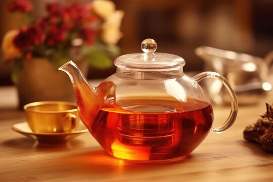 tea pot with a glass of tea AI Generated
