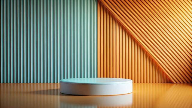 Glossy red arc on minimal white plane, abstract modern sculpture and geometric design