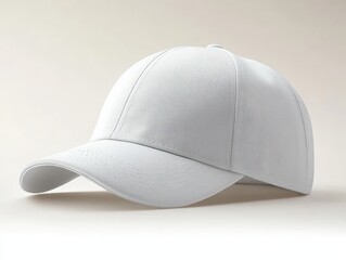 clean white baseball cap with curved brim, visible stitching and soft shadow on a neutral background, minimalist and calm mood