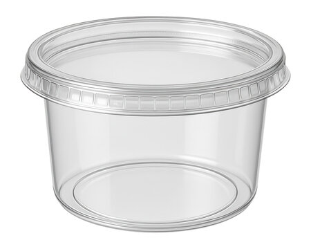transparent food grade plastic round glass with a lid 400 ml, plastic container on white background , food plastic box isolated on white, product packaging for foodstuff or paints, adhesives, primers