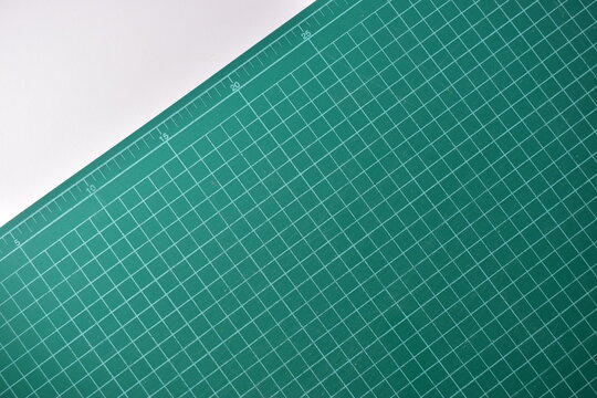 green cutting mat board on white background with line and scale measure guide pattern for object art design, tool equipment of diy craft work