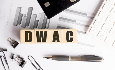 Wooden blocks with the acronym dwac on office desk with charts and stationery, representing deposit
