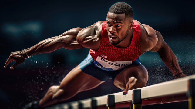 The Hurdler's Graceful Leap: An athlete clearing a row of high hurdles with ease and precision.
