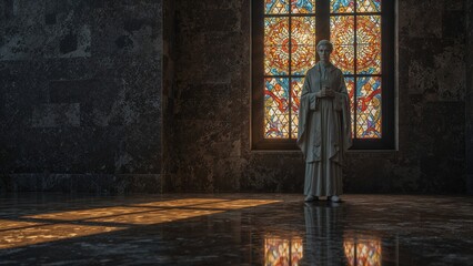This striking image features a male clergyman dressed in black, exuding determination and strong presence, emphasizing the depth of character and leadership under subdued lighting.