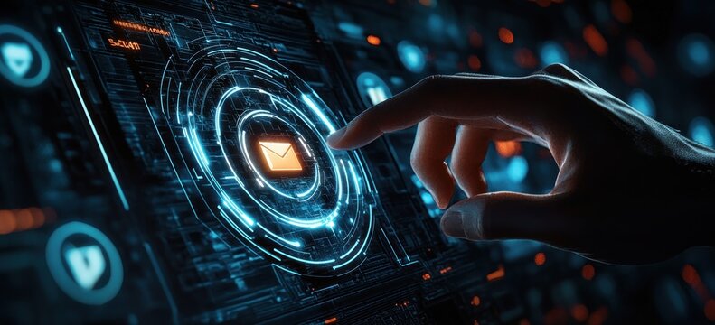 Finger Pressing Digital Checkbox on Futuristic Interface