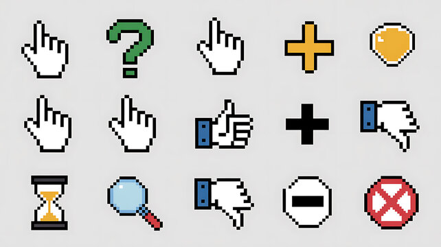 Rendered, pixelated hand cursor icon seen in image