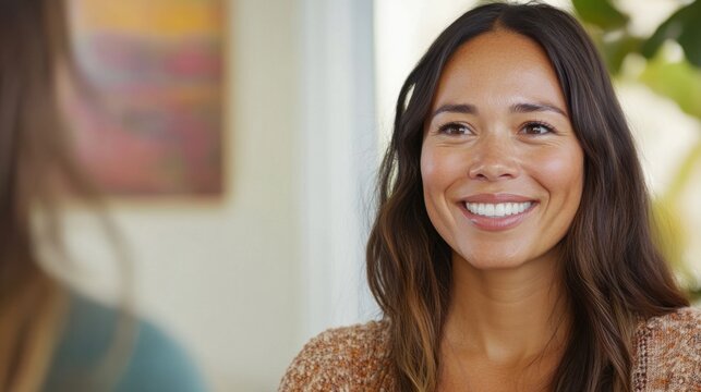 Therapist offering active listening support with attentive posture, calm environment, soft lighting, warm decor, subtle empathy, client sharing feelings, open body language, deep connection,